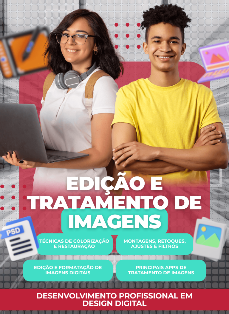 Curso focado na edição e tratamento de imagens com Adobe Photoshop. Ensina técnicas de correção, composição, colorização e aplicação de...